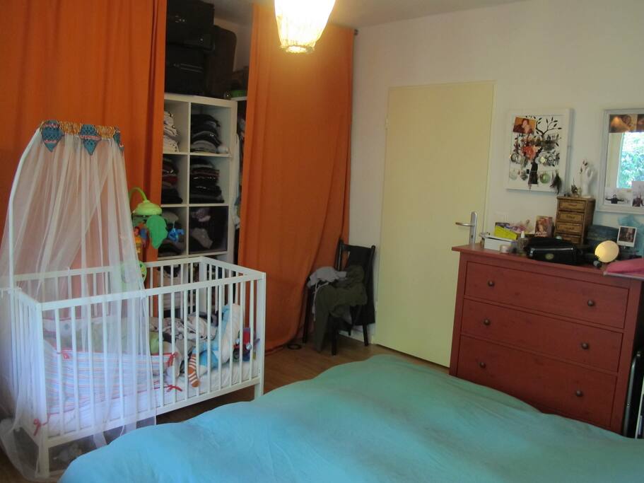 房間有一張King size雙人床和一列大窗,窗外是一個公共花園。房間另外一面就是一列方格櫃和掛衣服的地方,儲物空間非常足夠! 可是! 由於有一列大窗加上沒有窗簾,對於夏天4點多就天亮的德國來的……有點……不太好。至少我是每天很早就因為太亮而醒了。